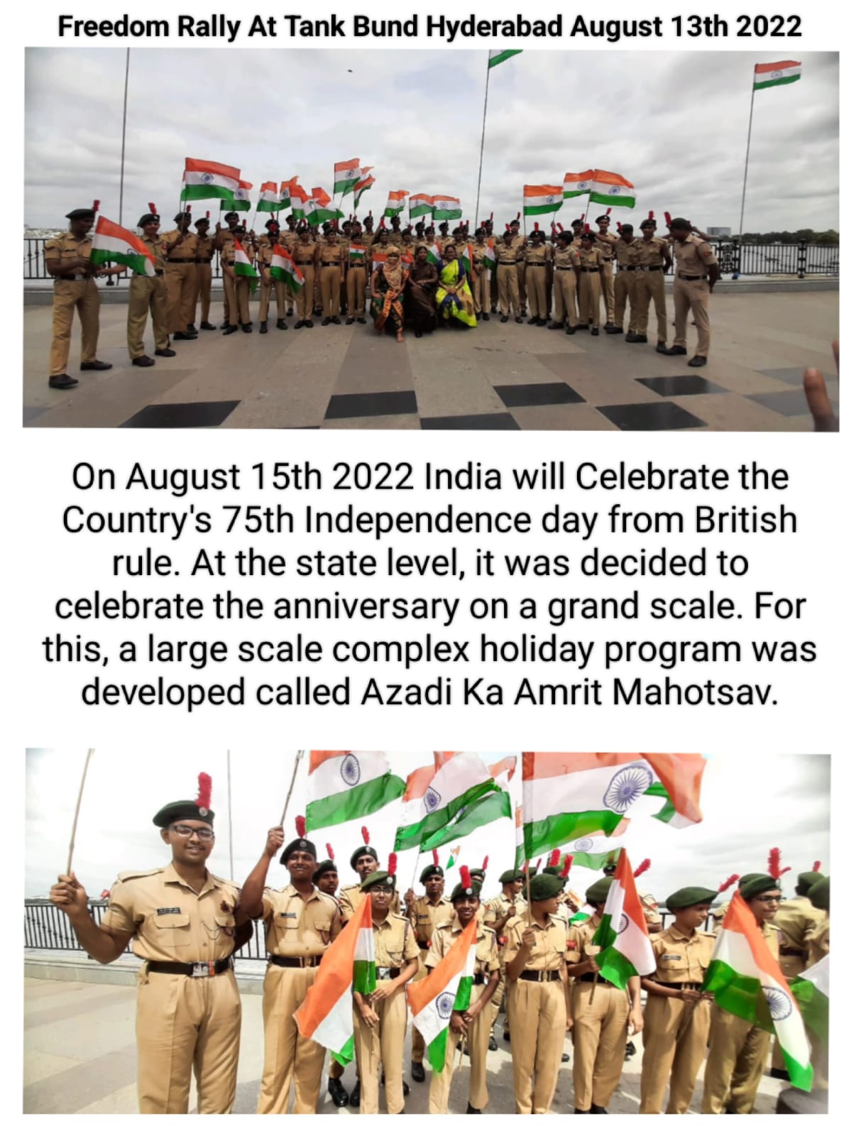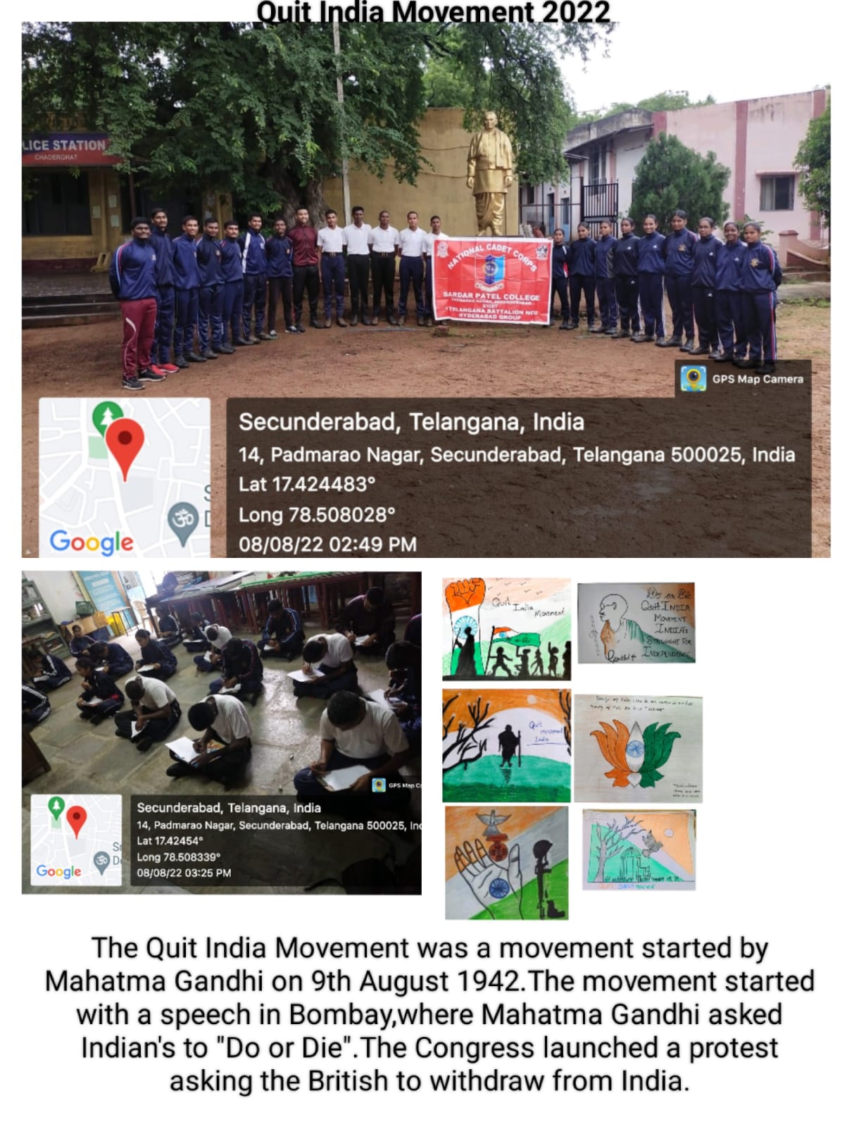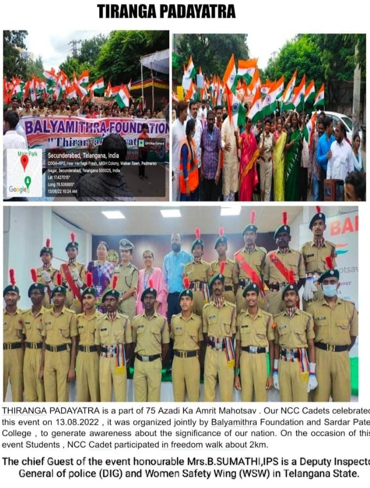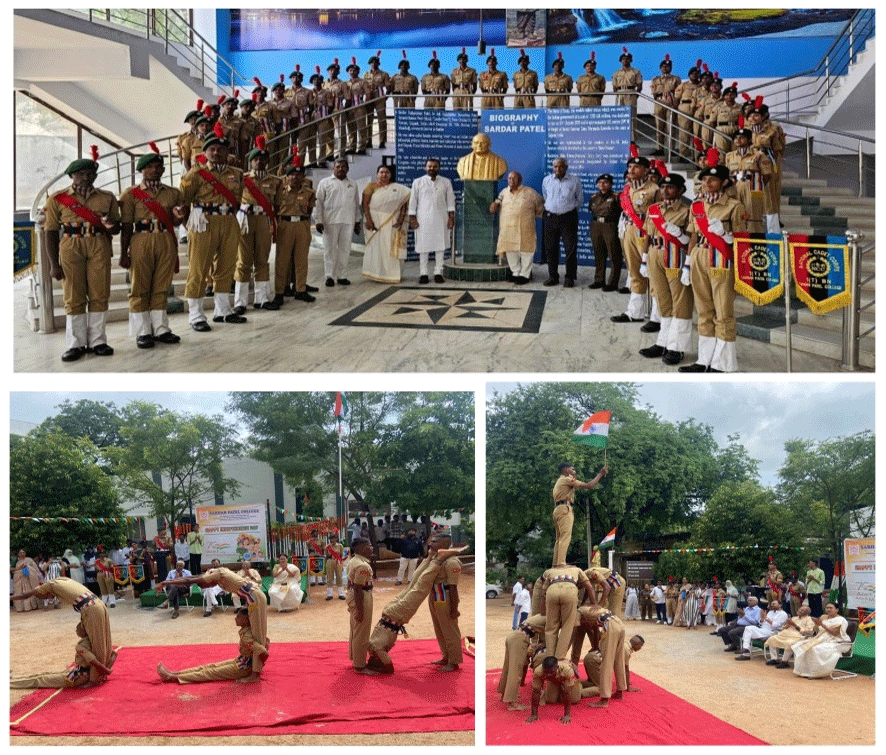 A total of 41 cadets (23 SDs and 18 SWs) celebrated Independence Day at Sardar Patel College premises on 15-08-2024, organized by Sardar Patel College 3/1 Coy, 1(Telangana) Battalion, Hyderabad Group, AP & T NCC Directorate."