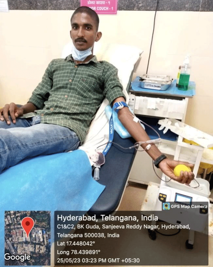 One of our cadets, Sgt. Soma Sai Kiran, donated blood to the mother-in-law of one of our staff members, Mrs. Lakshmi Bai, on 13-12-2023 at Radnya Blood Center, Suchitra."
