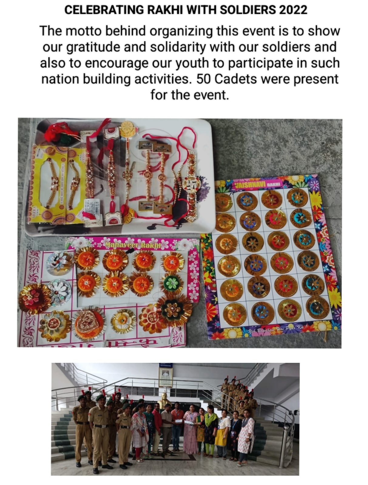 5. Our cadet, O. Meghana, participated in the "Rakhi for Soldiers" event in collaboration with the Samskruthi Foundation at Raj Bhavan. The Chief Guest for the event was Dr. Tamilisai Soundararajan, the Governor of Telangana.