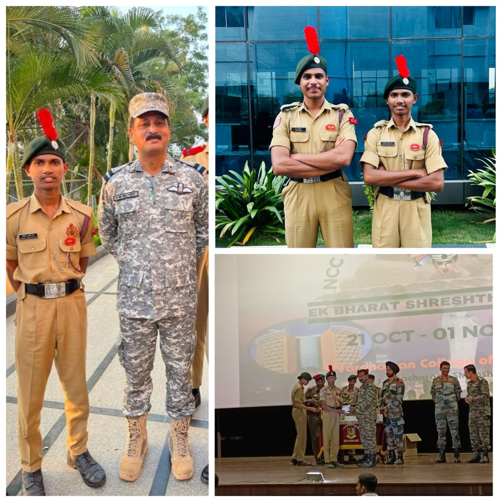 Our cadets, LCPL. M MAHESH and CDT. D LIKITH, attended the Ek Bharat Shreshtha Bharat Camp (EBSB), which was held at CMR College, Kandlakoya. As cadets of Sardar Patel College, 3/1 Coy, 1(T) BN, Hyderabad Group, NCC AP&T Directorate, they participated in the Ek Bharat Shreshtha Bharat camp from 14-05-2024 to 25-05-2024 at CMR College, Kandlakoya. During the camp, they gained valuable insights into understanding, communicating with, and effectively interacting with people from different cultures. They also had the opportunity to interact with cadets from various NCC directorates, enhancing their experience and fostering national integration.