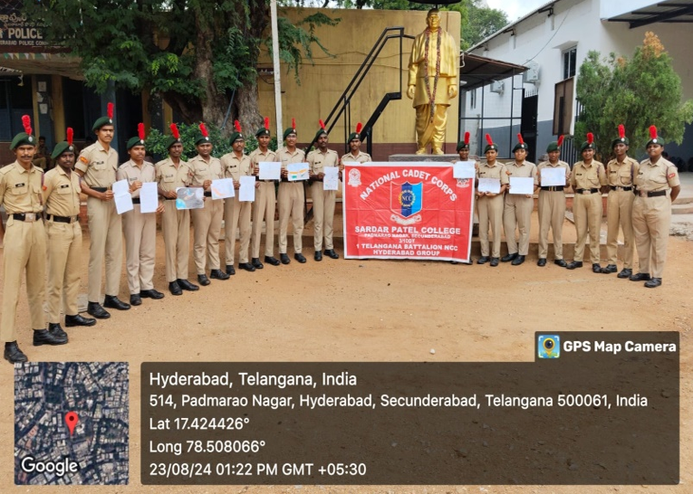 A total of 23 cadets (16 SDs and 7 SWs) participated in National Space Day at Sardar Patel College premises on 23-08-2024, organized by Sardar Patel College 3/1 Coy, 1(Telangana) Battalion, Hyderabad Group, AP & T NCC Directorate."