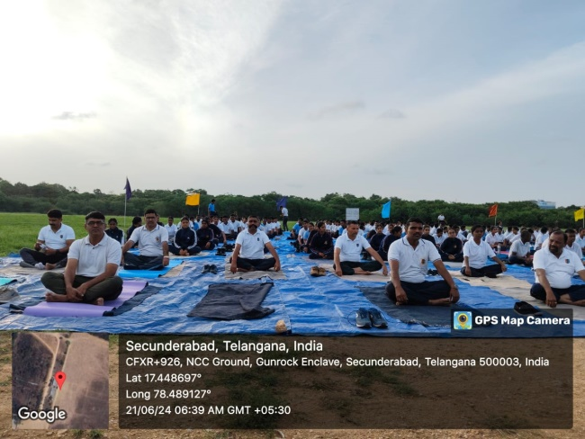 "Yoga is an ancient practice that encompasses physical, mental, and spiritual aspects to help control and strengthen the body. In collaboration with the Hyderabad Group, AP & T NCC Directorate, and Decathlon, the 10th International Yoga Day program was conducted at Bison Polo Grounds on 21-06-2024, featuring professional yoga gurus. Sixteen cadets from Sardar Patel College, 3/1 Coy, 1(Telangana) Battalion, Hyderabad Group, AP & T NCC Directorate, participated in the program with great enthusiasm and activeness."